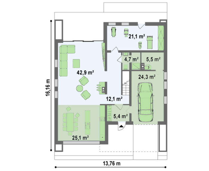 EM01-265 / Daxili qaraj ilə olan müasir iki mərtəbəli evin layihəsi
