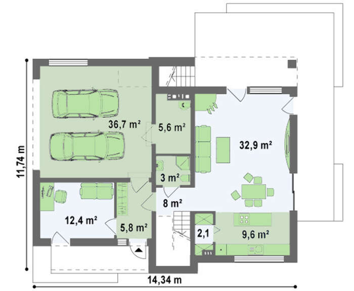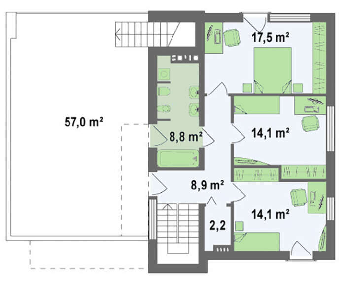 EM03-181 / Terras və 2 maşınlıq qarajı olan müasir ev layihəsi